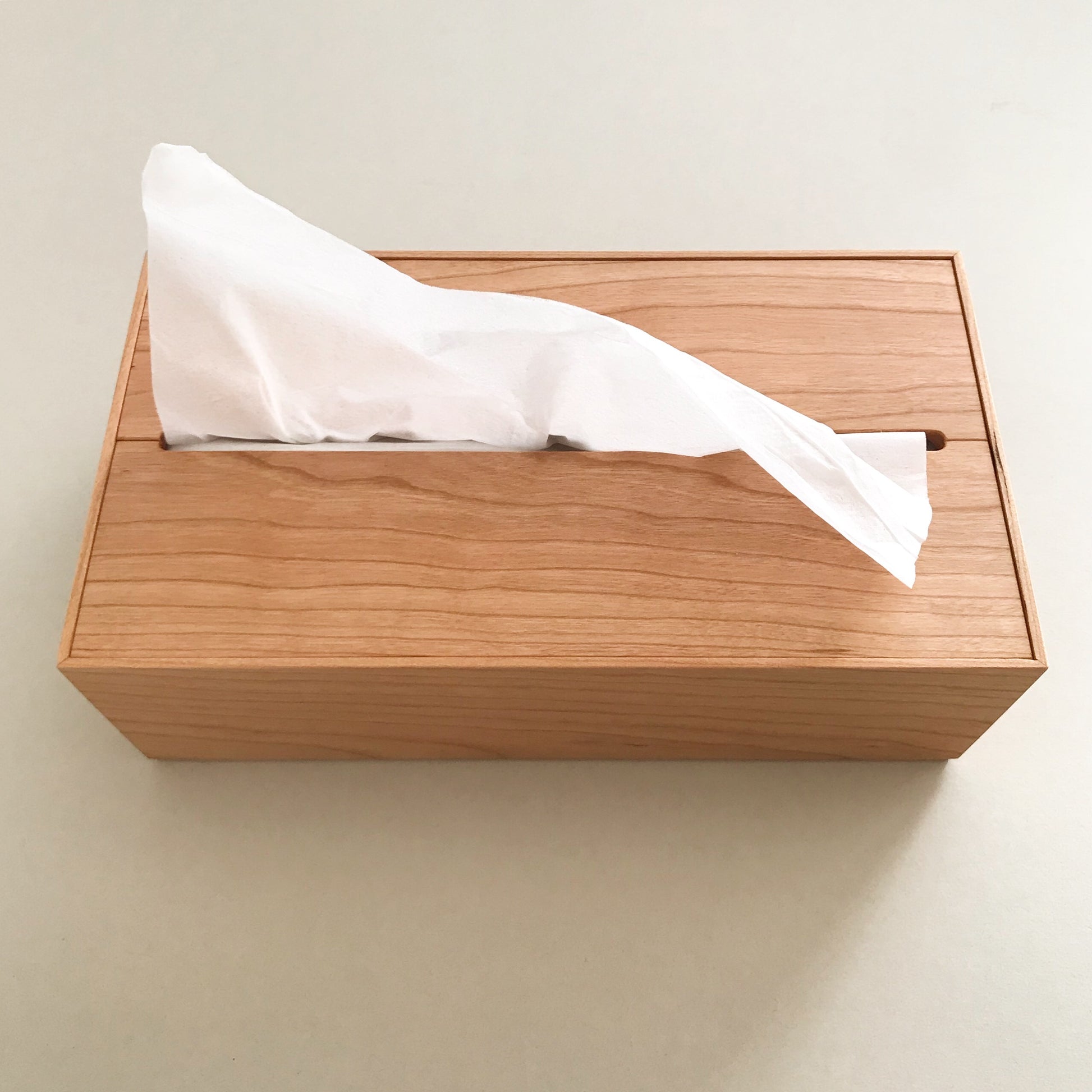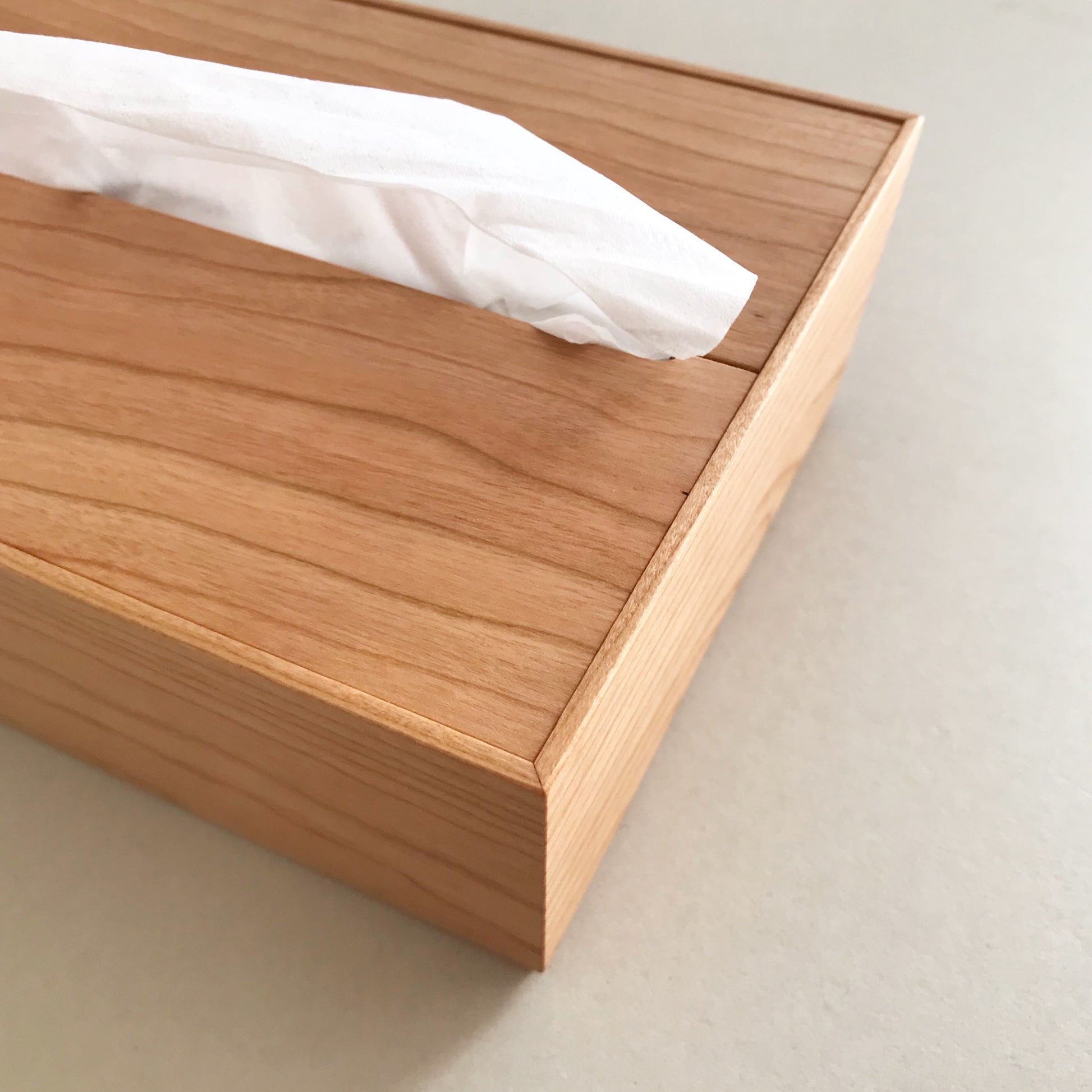 **「日常生活を丁寧に」**過ごす空間を演出する、スリムサイズの詰め替え用ティッシュをすっきりと隠せる木製ボックスケースです。