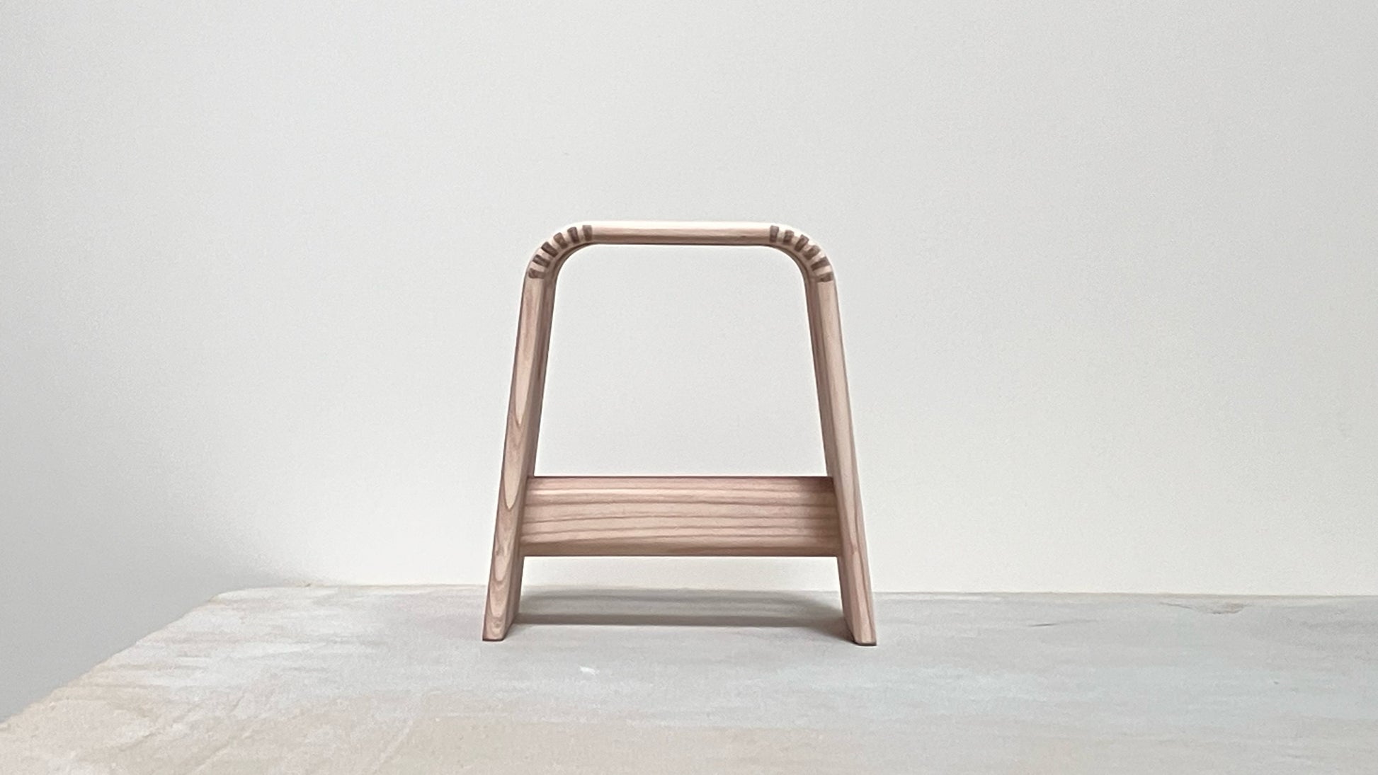 **「挽き曲げ(ひきまげ)」**という古くからある加工技術に新たな切り口を取り入れ、最小限の材料と労力でしっかりと機能するスツールとして形にしています。